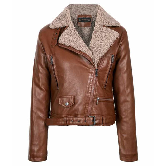 Brown Leather Lammy Biker Jacket Women