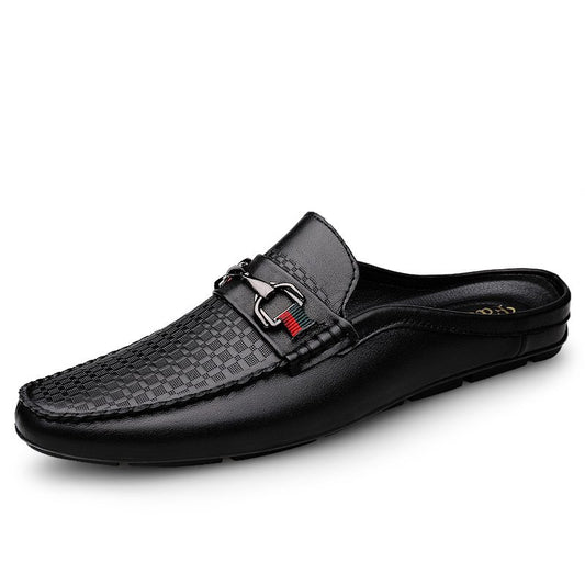 Mocasines de piel para hombre, tipo mules sin cordones