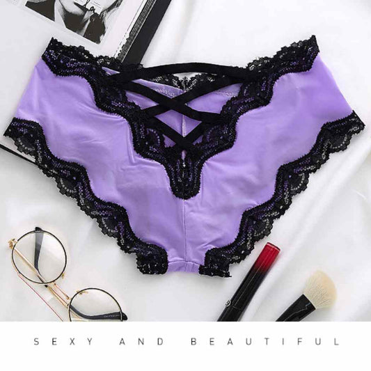 Braguita de talle medio con encaje y aberturas, estilo tanga.