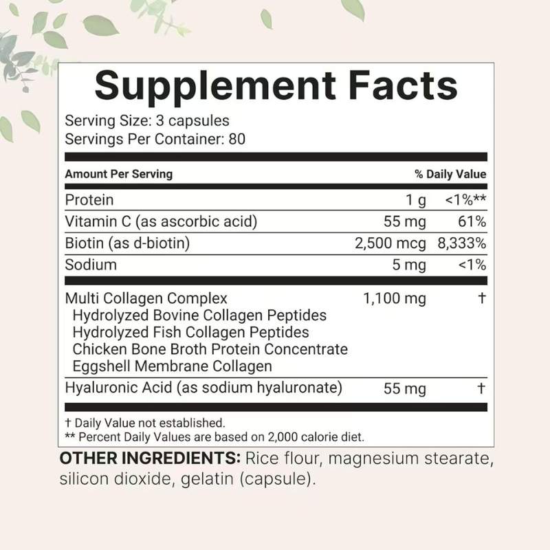- Multi Collagen Complex: Type 1 to 5, 1100mg
